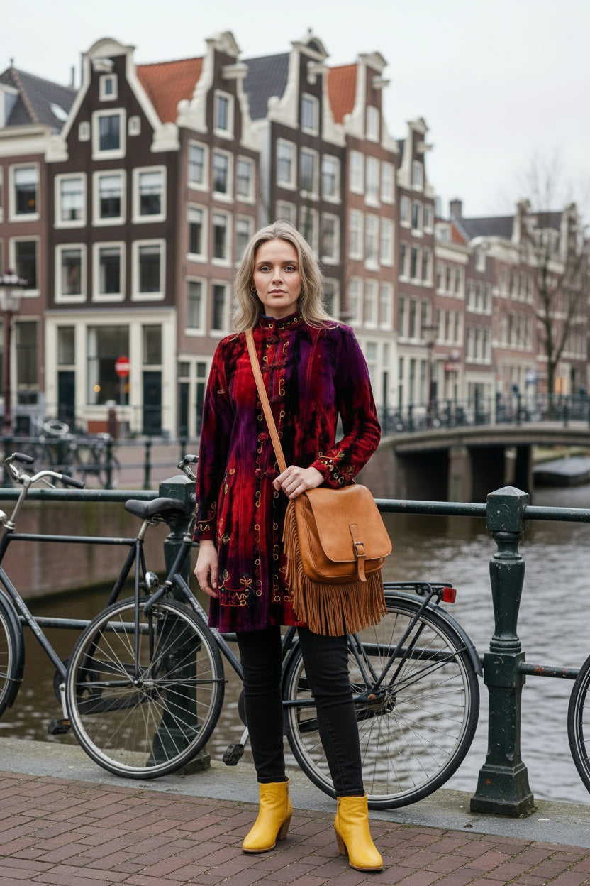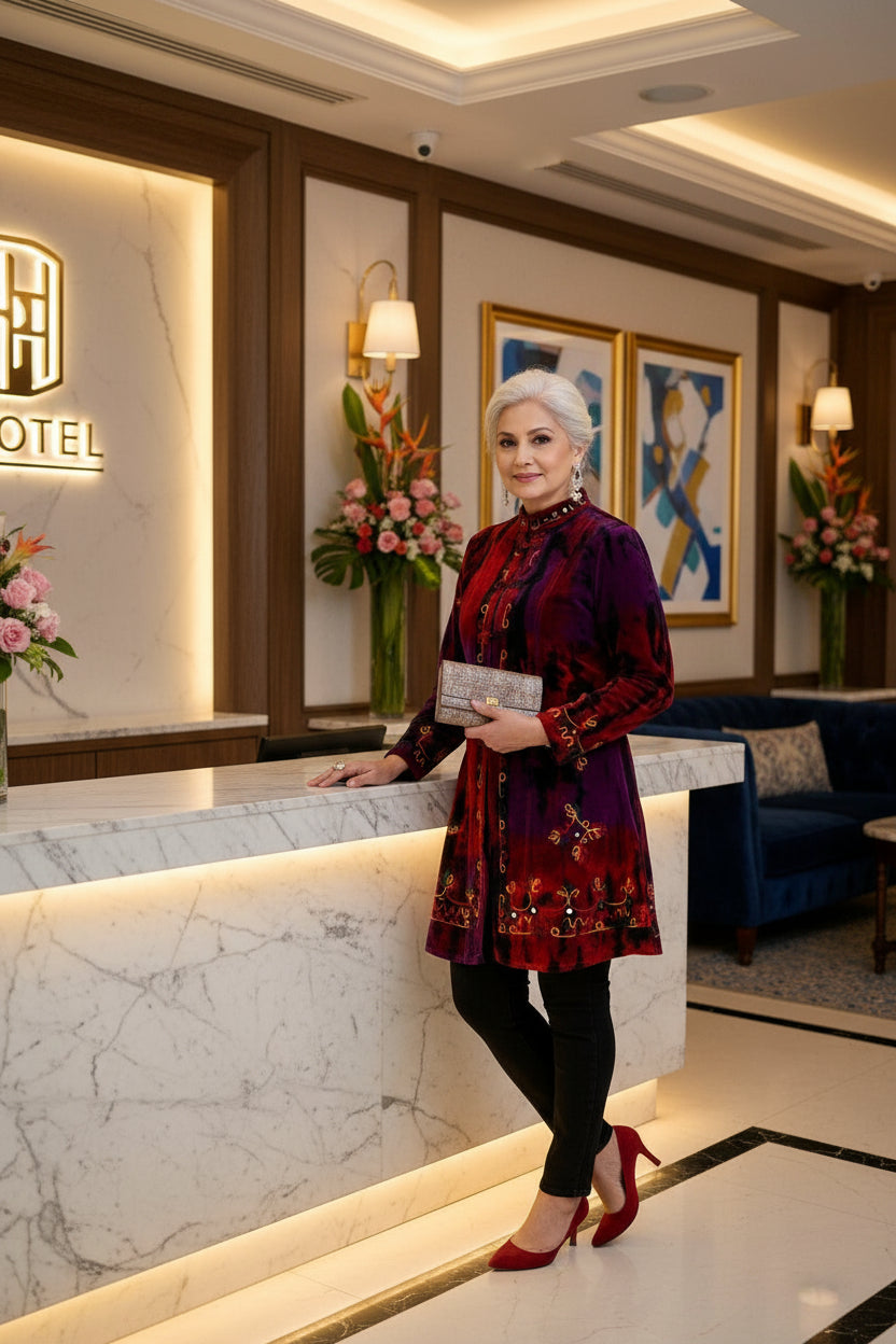 Step into timeless bohemian elegance with this embroidered cotton velvet coat โ a statement piece that blends luxury, colour, and craftsmanship.