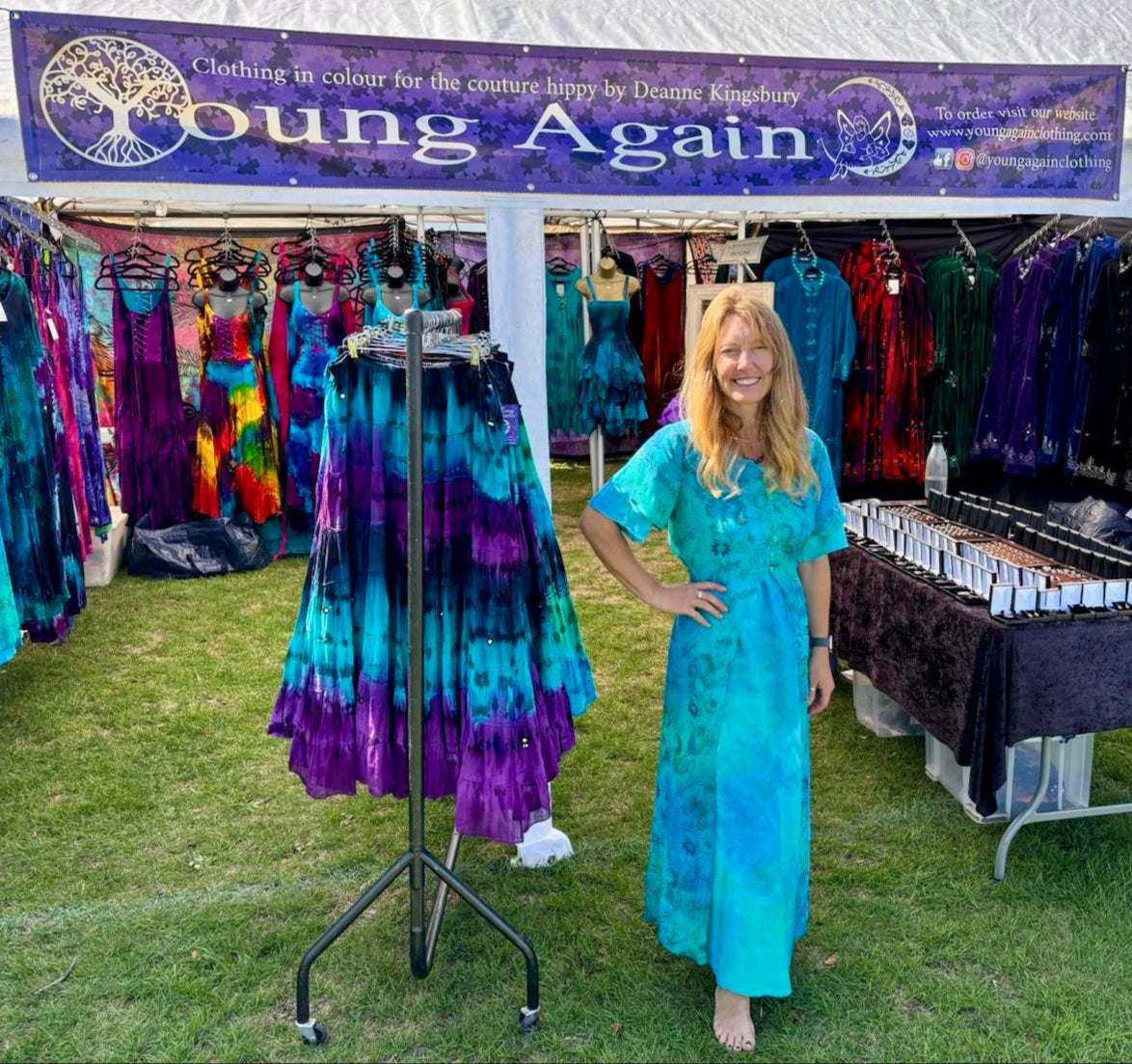 Colours available are Purple Multi, Turquoise (shown), Red Multi, Autumn Multi, Purple/Black and Blue Multi . All size measurements are from armpit to armpit.
